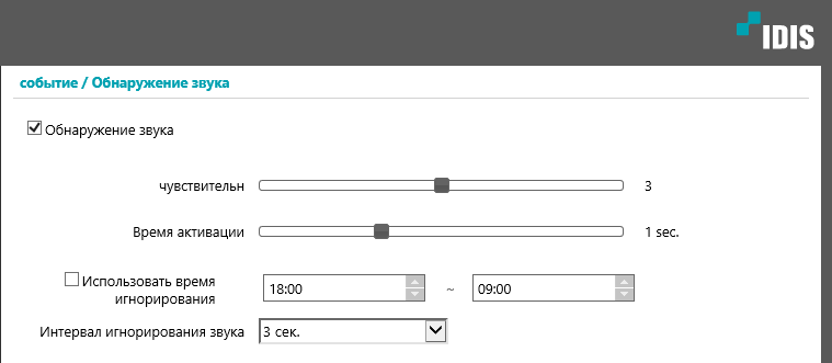 Скриншот 10. Веб-интерфейс камеры – настройки детектора звука